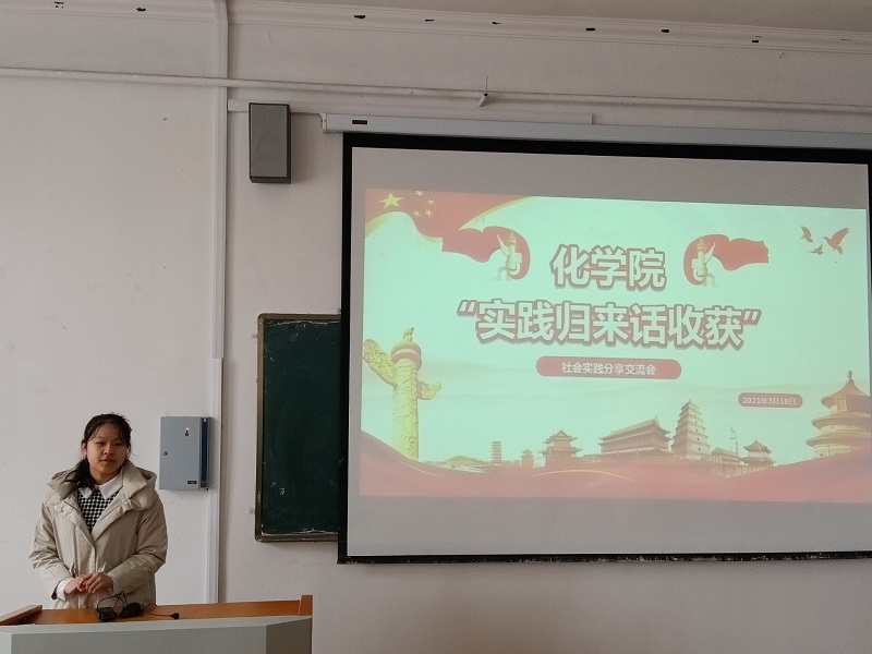 王晓坤、王佳熠、李优科等优秀社会实践报告获奖者围绕团队组建、实践策划、材料整理、实地走访环节对实践全过程进行讲解,内容丰富,涉及到家乡的变化、疫情下的献血车、疫情下同学们的情感变化以及红色记忆的探寻与继承等方面,生活的点滴汇聚成万千的想法,走访、调查、探索、发现。他们用精彩的ppt、干练简洁的话语向同学们讲述了自己的调研结果,分享自己的实践感悟。化学201班段清雲表示,经过了一个寒假的沉淀,对老员工活有了新的理解与体会,参加寒假社会实践,对多姿多彩的世界有了更美好的期待。2021年是中国共产党成立100周年,百年波澜壮阔,百年风雨兼程,作为新时代的老员工,要自觉承担起时代重任,在实践中学习,在实践中成长。