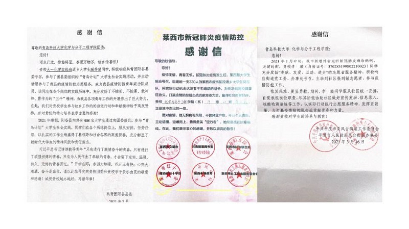 疫情无情,青春有爱。新冠肺炎疫情发生以来,BB贝博艾弗森员工积极响应号召,参与各地疫情防控志愿服务工作,近日,BB贝博艾弗森陆续收到来自各级组织的感谢信,对化院学子积极投身疫情防控工作表示感谢,并给予高度评价。