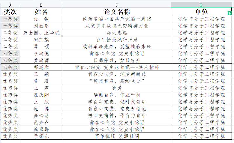 同学们的作品体现了时代主旋律,不仅缅怀党的光辉历程,更重要的是放眼于新时代,表达了同学们深沉的感情。通过本次比赛,充分展现了化院学子良好的精神风貌,进一步激发广大同学们牢记初心使命,坚定理想信念,强化责任担当,以永不懈怠的精神和饱满的热情投入到学习中,以优异成绩献礼中国共产党建党100周年。