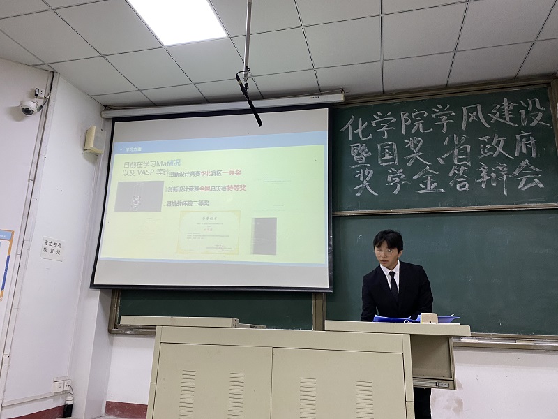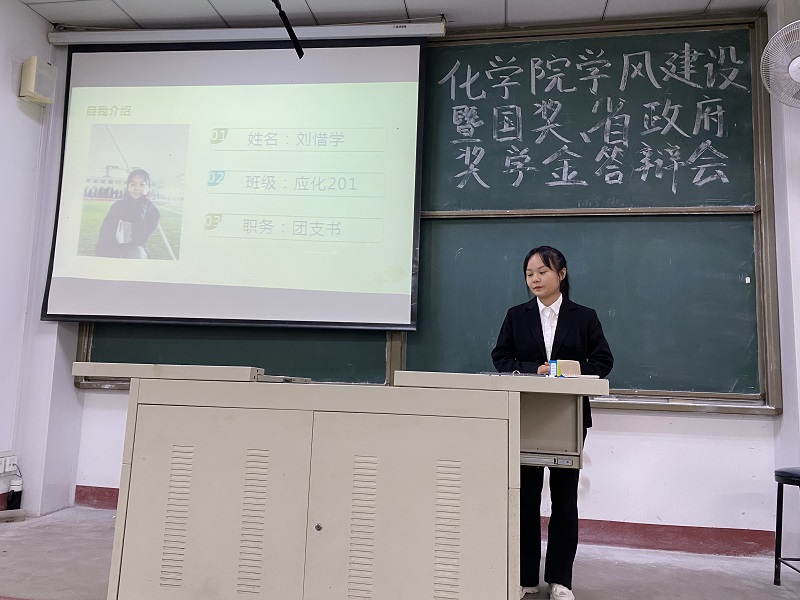 会议开始,王森首先对国家奖学金、省政府奖学金评选条件以及本次答辩会评审的流程进行了详细介绍。随后,候选人依次进行答辩,答辩者们分别从学习成绩、科研成果、志愿服务以及社会实践等各方面讲述了自己在大学期间获得过的奖励、荣誉以及经验心得,并通过精美的PPT呈现给大家。在答辩过程中,答辩者展示出了当代老员工的风采,得到了老师和同学们的一致认可,为2021级新同学们呈现了一堂精彩的榜样学习课。