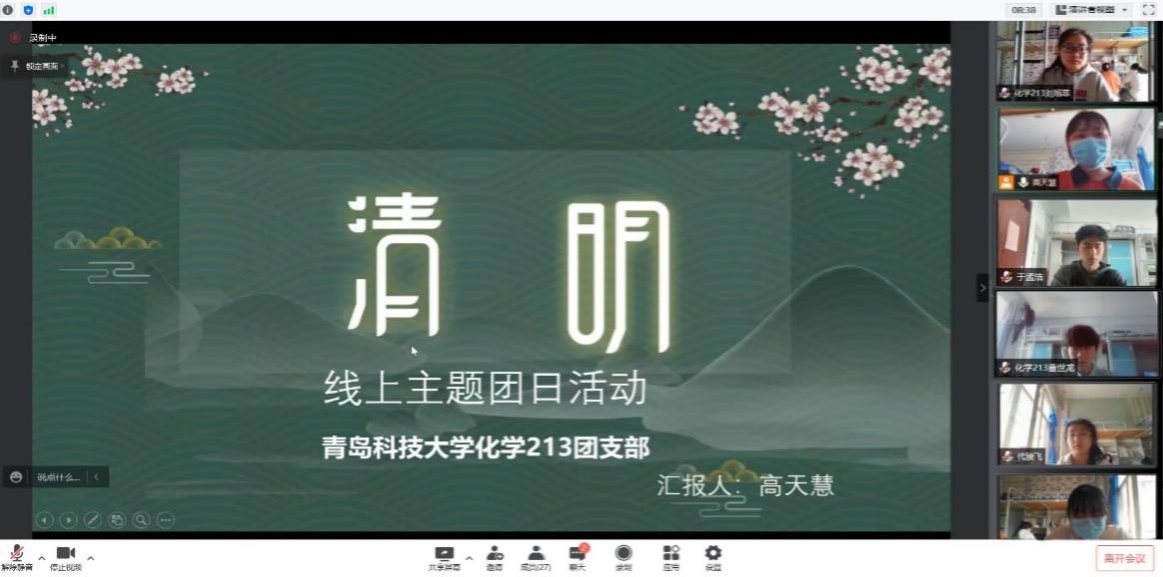 4月5号下午三点至三点半,化学213团支部进行了“赓续英烈精神,汲取奋进力量”线上清明节主题团日活动,本次活动化学213班20名团员全部参与,7位同学列席参加。通过此次活动,进一步提高了团支部的凝聚力,增强了同学们对英雄先烈的崇敬感,学习英雄,争做英雄。