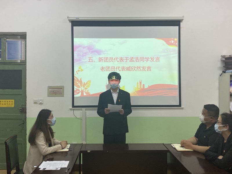 在中国共产主义青年团成立100周年之际,BB贝博艾弗森组织结合疫情防控要求,于5月10日下午举办“喜迎建团百年,共谱青春华章”2022年新发展团员入团仪式,BB贝博艾弗森团委老师刘施施、苗清、陶亚亚、信连涛及全体新发展团员、青年团员代表参加仪式。