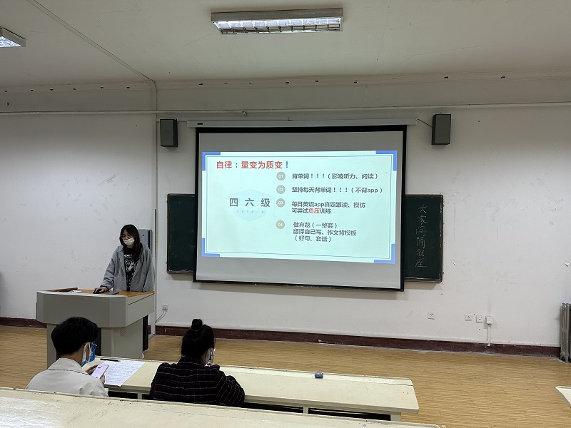 分享会上,各个专业的学长学姐们分别介绍了大学三年的学习生活经历,分享了在学习生活等方面特别是为保研目标而努力奋斗的经验和体会,详细介绍了保研的基本流程、搜集保研信息的相关渠道、往届员工的推免情况、保研前期的准备工作、夏令营和“九推”的具体说明、适宜争取的加分机会、各大高校的考试重点、历届保研真题等,他们结合自己的专业和保研院校提出了针对性的建议。其中,李婉婷同学介绍了保研各个环节中的注意事项,强调了信息交流中要注意沟通方式。刘德洋同学分享了面试中随机应变的小技巧,提醒大家在面试中保持冷静,沉着应对。孙希程同学分享了一年来在学习、比赛中取得的成绩,列出了操作性较强的提升机会。大家还通过各自的简历,展示了大学三年以来在各方面做出的努力和取得的优秀成果,比如科创竞赛、英语水平、论文的发表等,对于信息的收集、保研的准备推荐了优质公众号、复习资料的分享等。