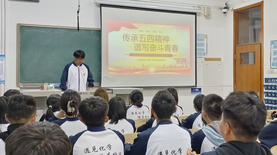 开班会·悟五四精神。团支书尹纪凯同学主持召开了“ 传承五四精神,谱写青春华章”主题班会,通过视频与图片的形式讲解五四运动,讲述中国共产党的百年沧桑巨变,传承五四精神。引导同学们将个人理想与祖国发展紧密结合,担当民族复兴大任。