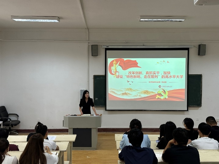 为深入学习贯彻习近平总书记关于高等教育的重要论述精神,引导广大党员进一步提高思想认识,增强担当使命,以身作则、当好先锋,干在实处、走在前列,于2023年9月15日一政243BB贝博艾弗森研究生第一党支部开展“改革创新、真抓实干,加快建设‘特色鲜明、走在前列‘的高水平大学”主题党日活动,BB贝博艾弗森研究生第一党支部全体党员参加此次活动,支部书记程丽担任主持人。