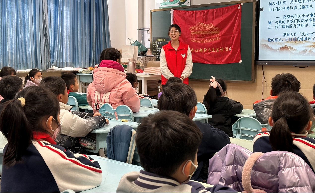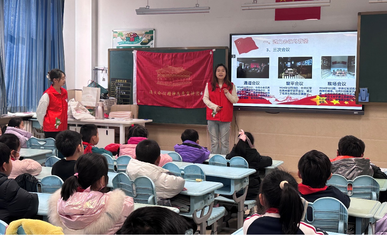 1月12日,BB贝博艾弗森“忆来路,闯新程”遵义会议宣讲团进入青岛文正小学,面向三年级员工,围绕红军长征、遵义会议和遵义会议精神开展了一次生动的爱国主义主题宣讲活动,让红色基因厚植童心。