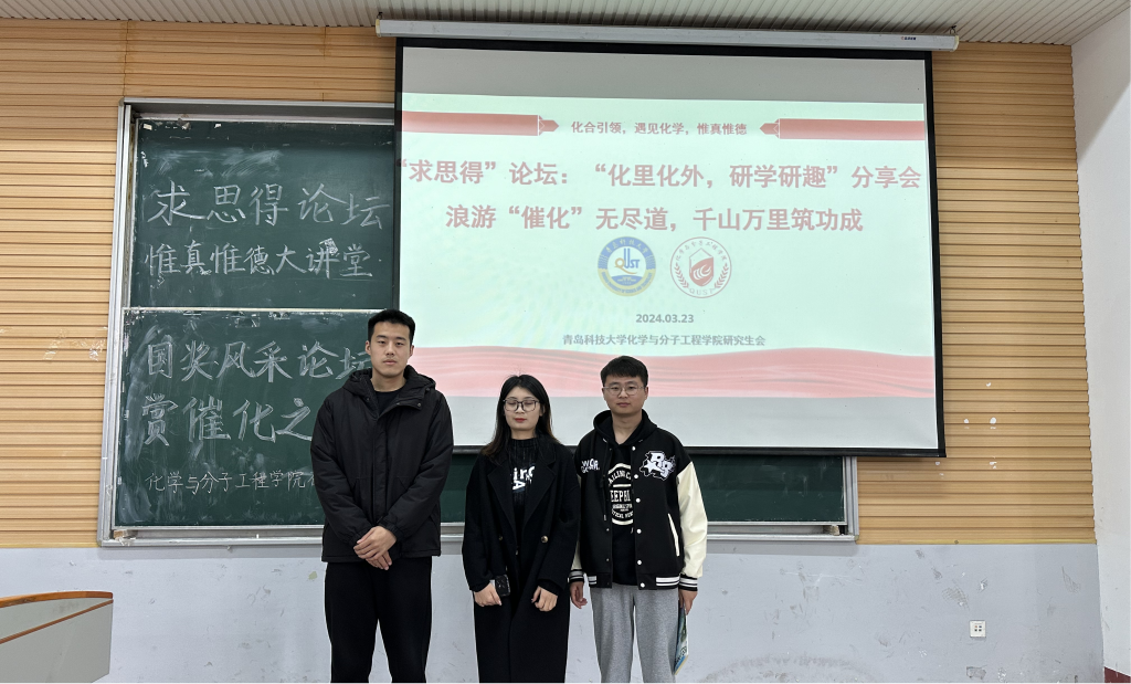 2024年3月23日,BB贝博艾弗森研究生于第二教学楼101室举办“求思德”论坛:“化里化外,研学研趣”——浪游“催化”无尽道,千山万里筑功成专题报告会。刘凯昱担任本次活动主持人,李红坤、李其昌、杜英雪三位国奖获得者进行经验分享。会场座无虚席,会议取得圆满成功。