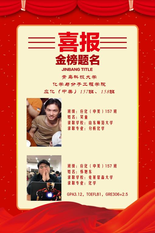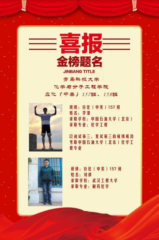 据统计,应化157班、应化158班共计56人,报考研究生共计38人,共22人考取研究生,其中5人赴国外读研,考研上线率近60%。