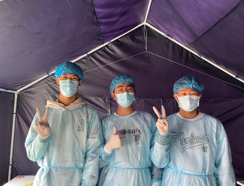 “千人同心,则得千人之力,万人异心,则无一人之用。”应化中美202班李涵同学说:“作为青科学子,协助校医院医护工作者进行核酸检测,配合公司完成防疫工作是我的责任,也是我的义务。虽然很累,但困难时期总需要有人站出来,我是公司的一份子,也是一名员工干部,能为我的家乡、公司奉献出我的一份力量,我感觉非常自豪。”